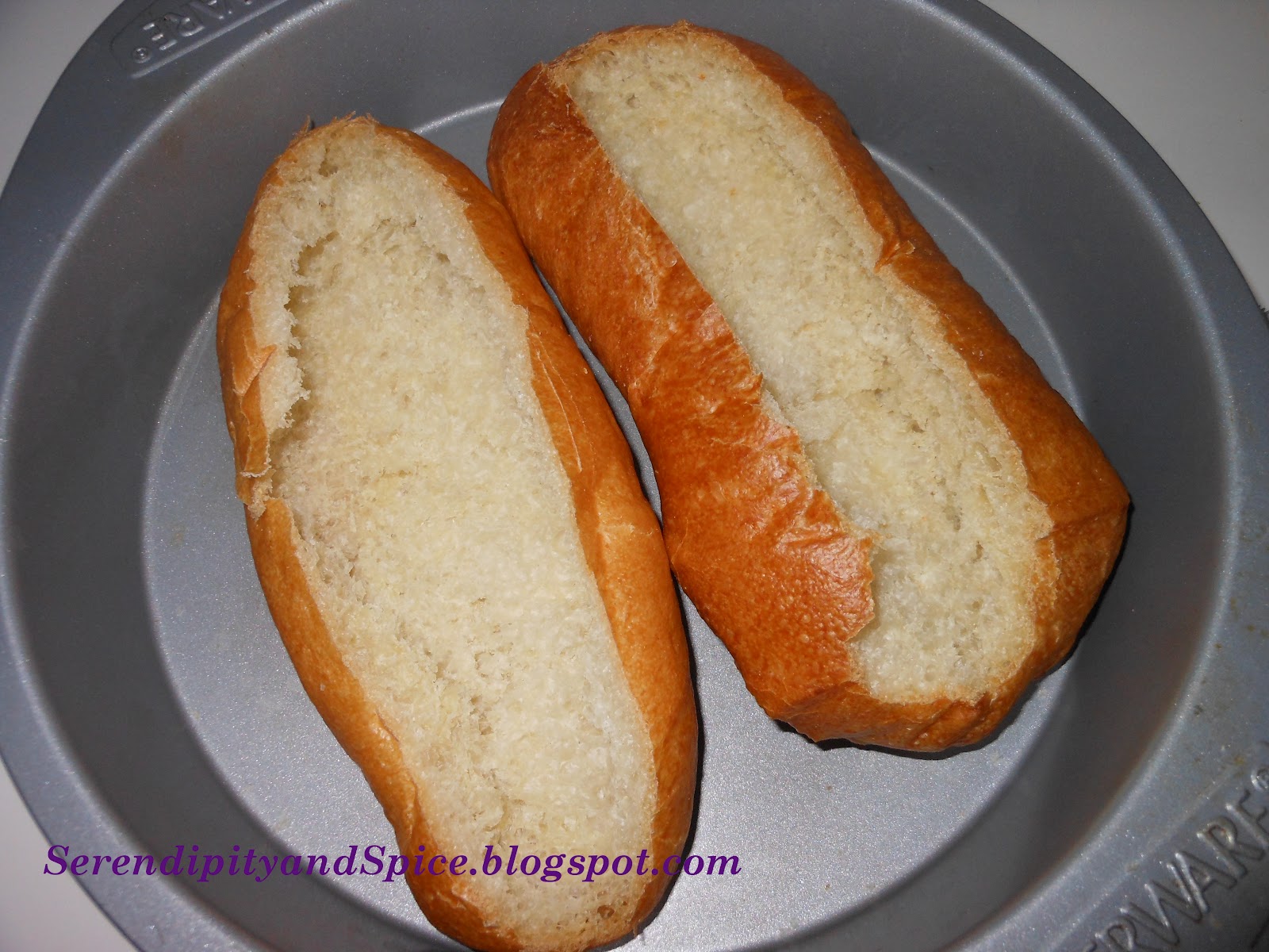 Hollow out your baguette rolls. I saved the tops and covered them with cheese for dinner that night.