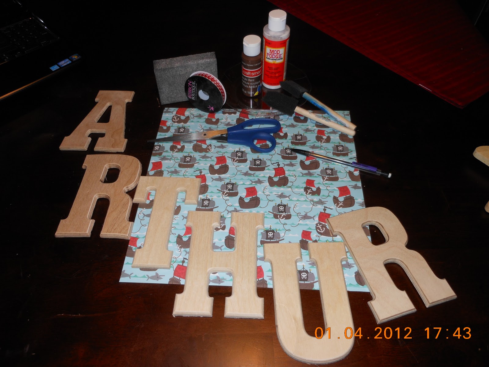 Scrapbook Paper: Hobby Lobby .59/ page (I suggest choosing something that matches the nursery…Arthur’s nursery is pirates… Argh Matey!)