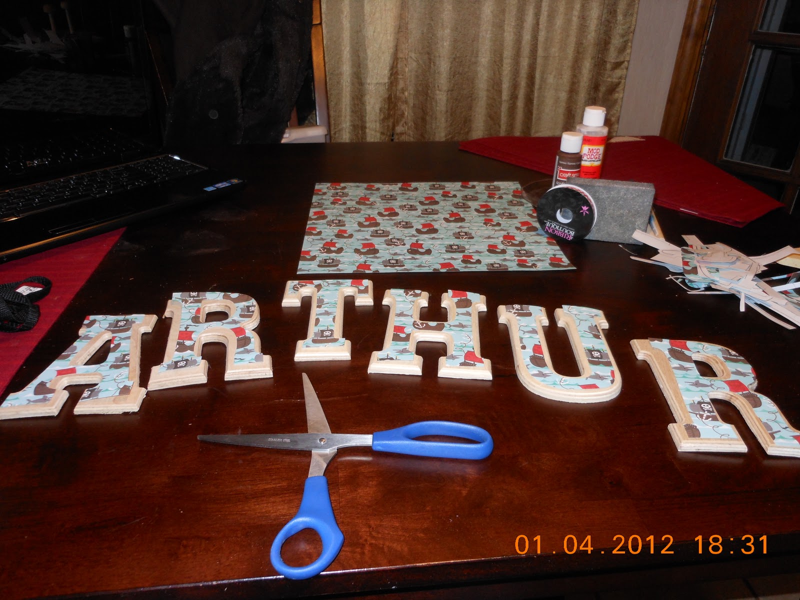 9. Once your letters are dry you can use the Modge Podge to paste the scrapbook paper cutouts onto the wood.