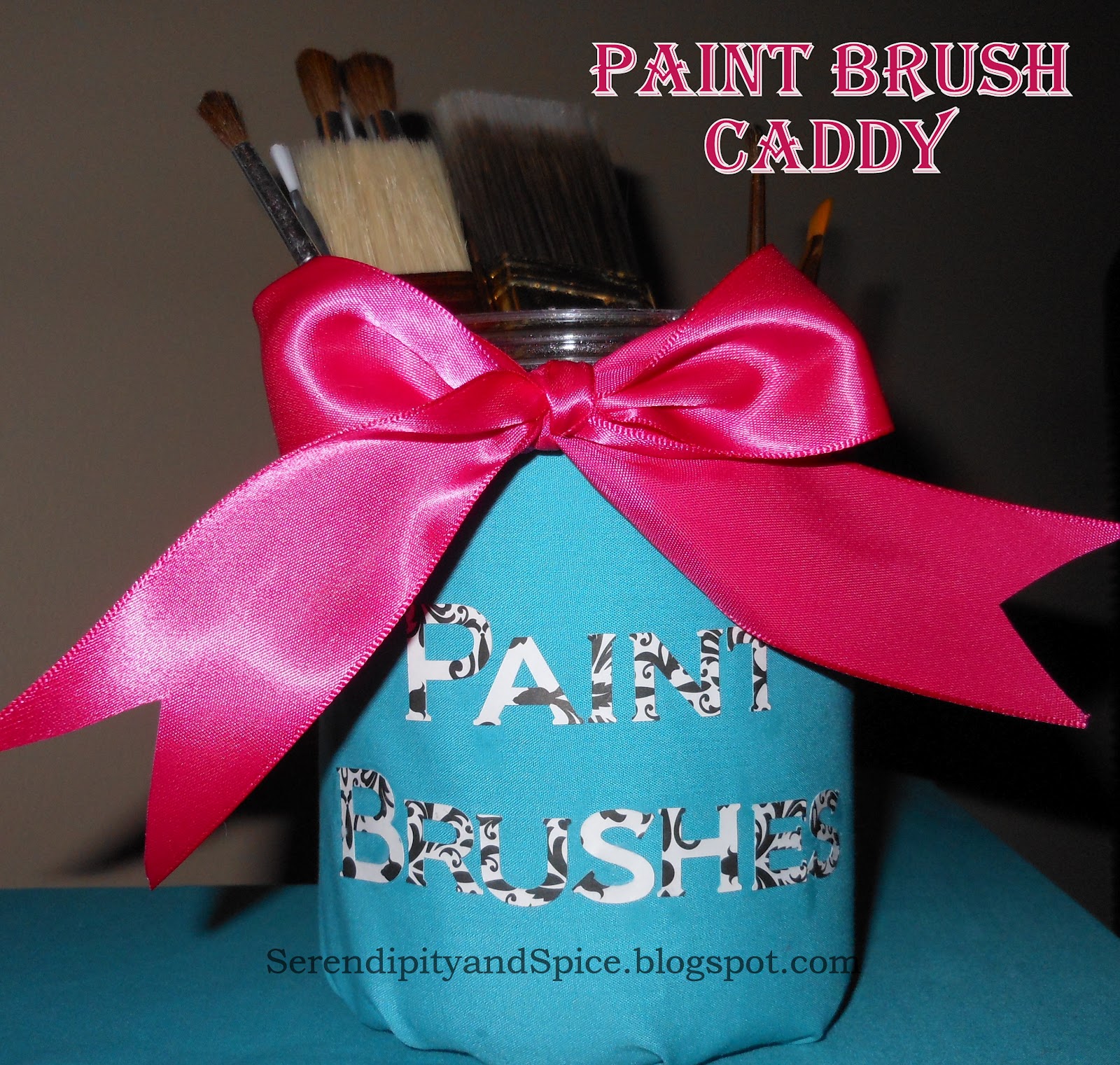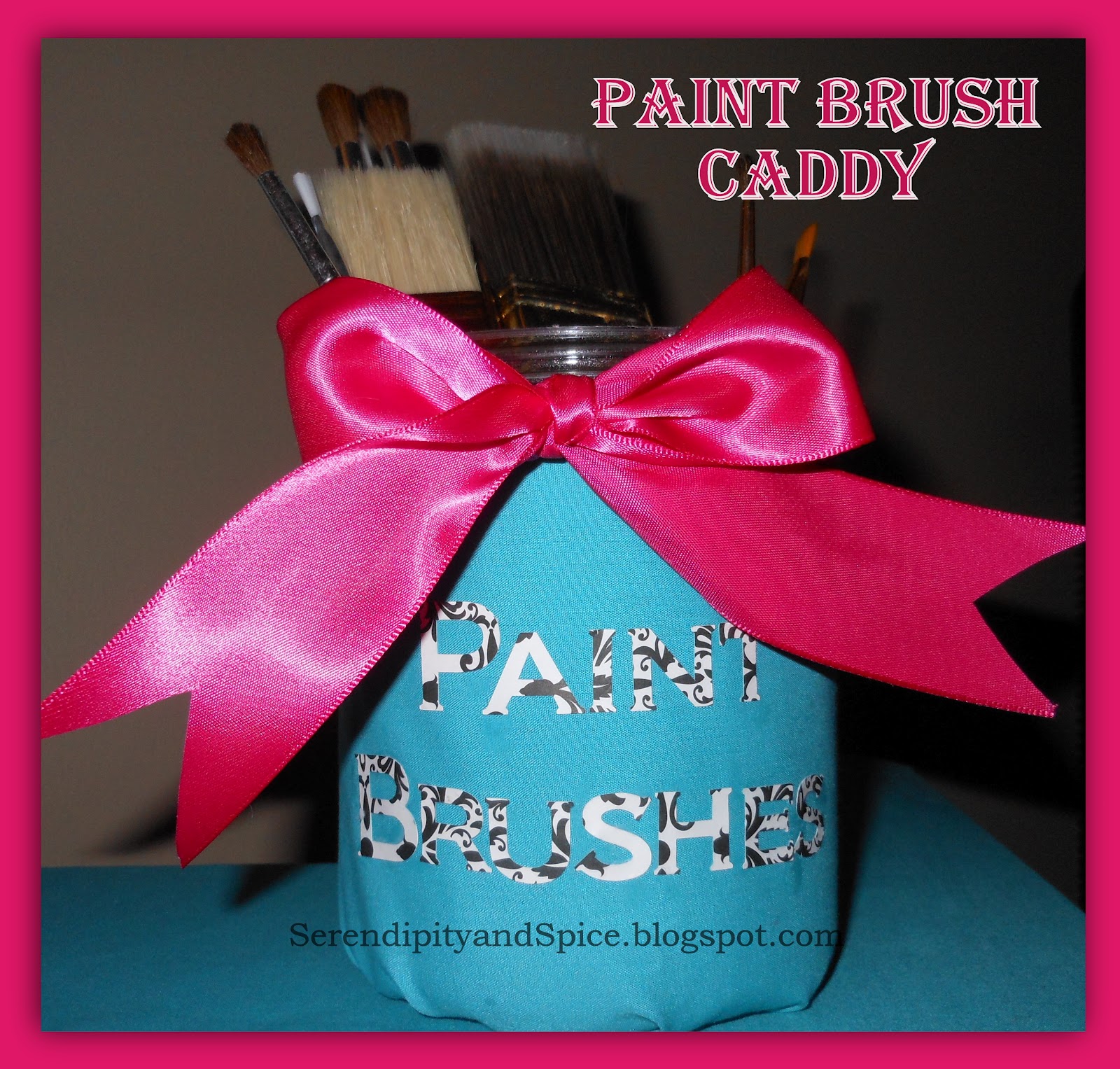So, I made this cute Paint Brush Caddy to keep all of my paintbrushes coralled on my desk. The best part… I can put them away wet! No more leaving them on the kitchen counter to dry!
