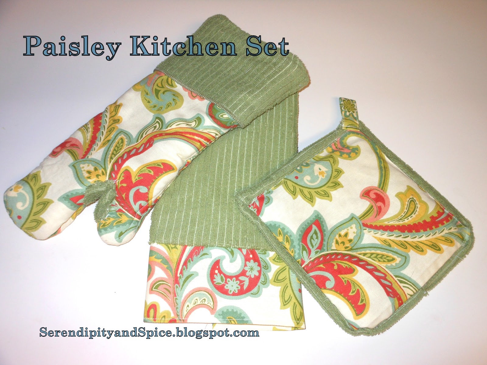This kitchen towel was super easy and super cheap to make! I used a bar mop towel from the Dollar Tree and some leftover fabric from my Paisley Oven Mitt.