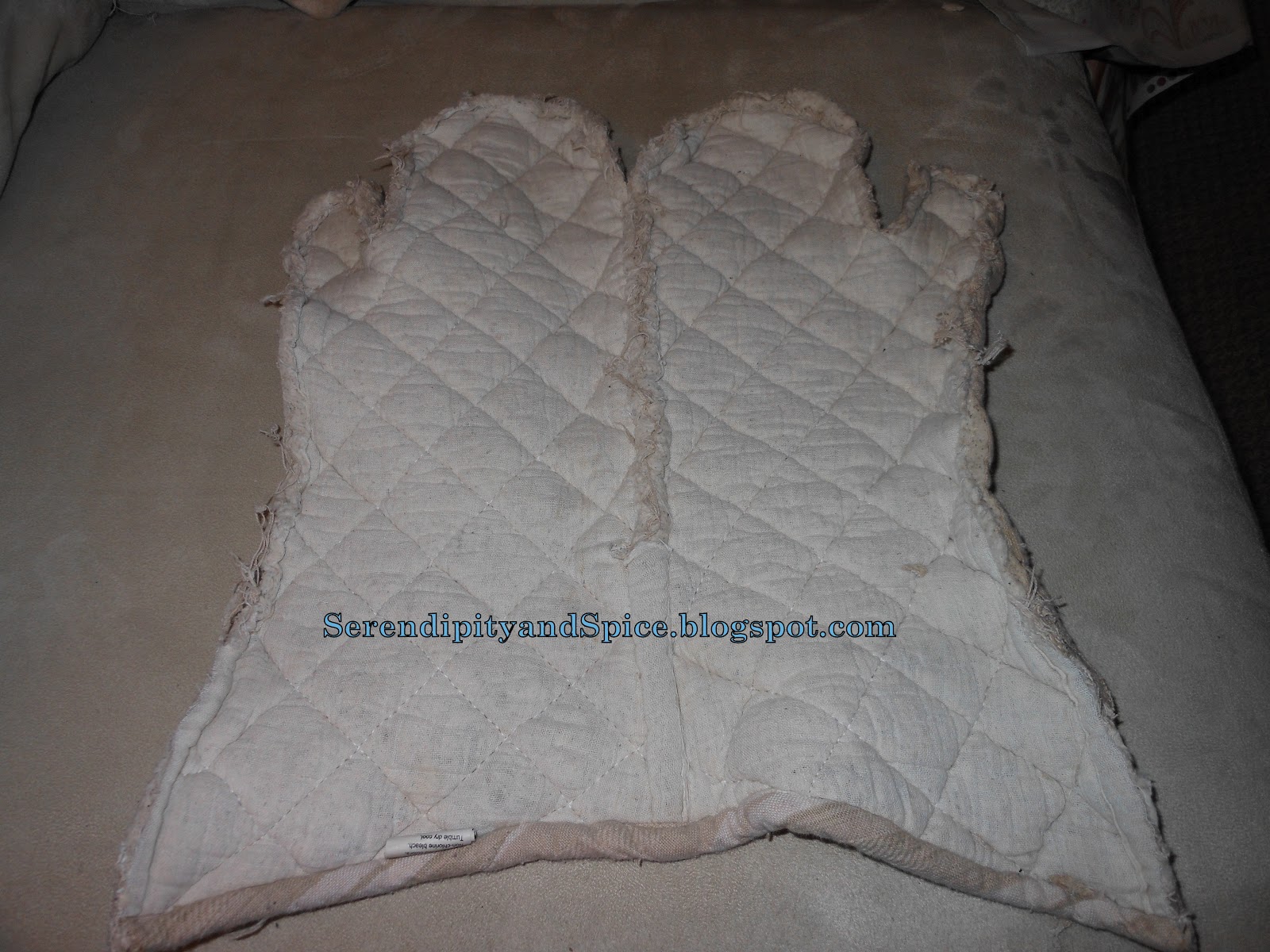 I made sure to sew all the way around- although, looking back, I would have left more of the bar mop on the inside- the ends like to poke out a bit when you pull the oven mitt off.