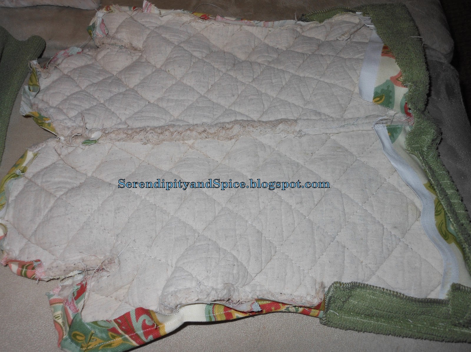 Finally, I just flipped it rightside out so the pretty fabric was on the outside. I did have to add a little piece of the bar mop to the thumb where I didn’t cut the fabric well enough and some of the old fabric was showing through.