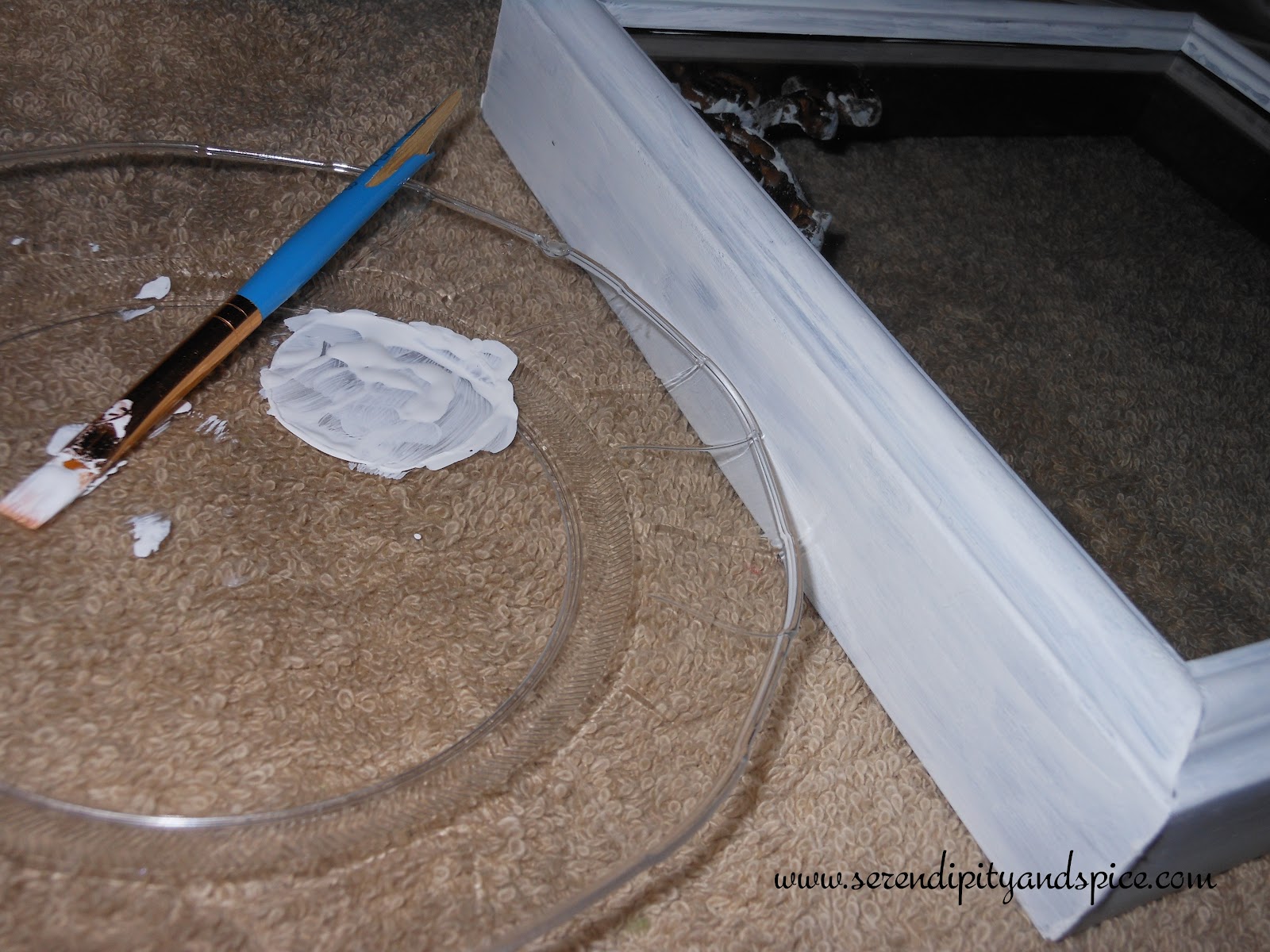 I love the Shabby Chic look right now with the distressed white so I painted the frame white.