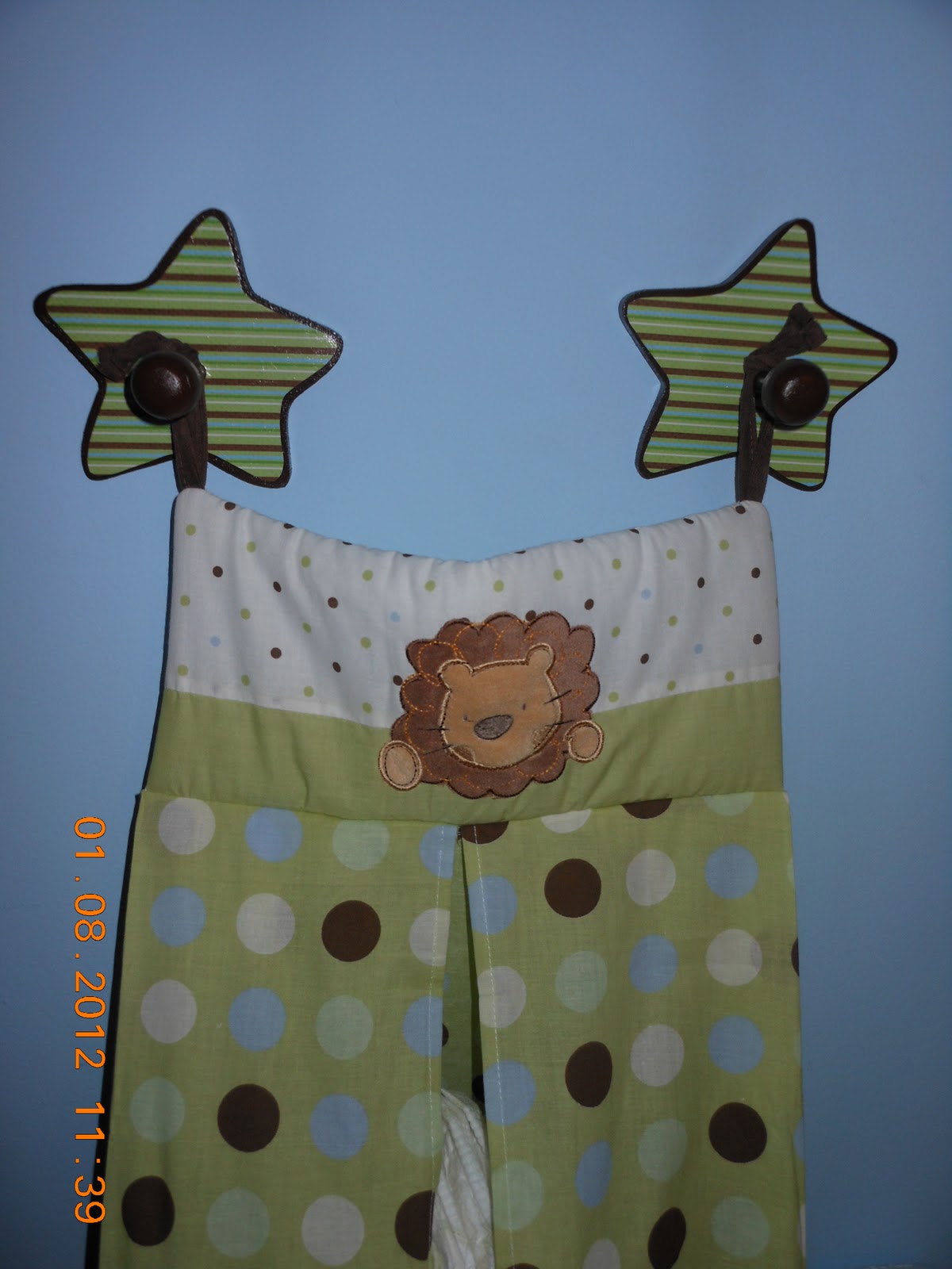 I decided not to put a changing table in my son’s room because I’ve always heard that it’s the least used thing for a baby… which after 11 weeks I have decided is completely true. We usually change him in the bed, on the couch, on our laps, pretty much where ever he currently is. After doing these modge podge letters for my best friend’s son I decided I could do basically the same thing for these hooks and just hand the diaper stacker on the wall next to his dresser.